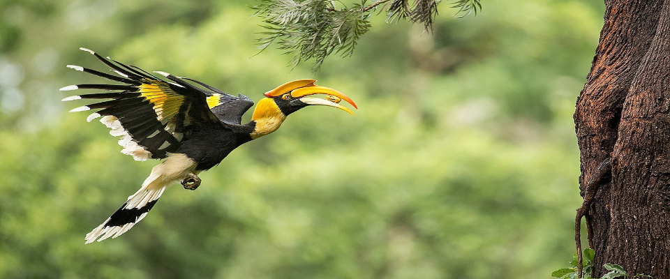 A common sight is the Wild Jungle Fowl and Violet Cuckoos. Another fairly common sighting is the Great Pied Hornbill with its bright yellow and black casque (helmet) on top of its massive beak.